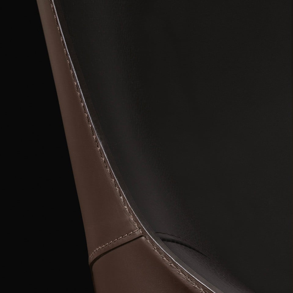 Synthesis and lightness are the cornerstones of natural elegance in the Stanford armchair. On the swivel metal base stands a seat with contemporary lines emphasised by the fabric upholstery or, in the leather version, with leather exterior and tone-on-tone leather interior.